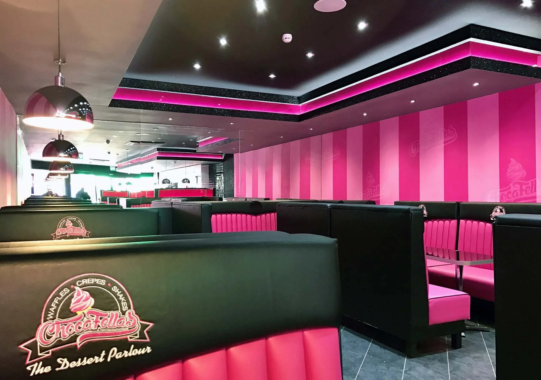 As well as working throughout the UK for the major dessert parlours such as Kaspa's and Creams, we also love designing independent stores. Our latest gelateria for Chocafellas combines the classic American style diner concept with the new trend for all day cafe and dessert experiences. More photos and info being uploaded shortly. We have also recently completed stores for Urban Ice, Treats, Swirlys, Chocafellas, and Creamery & Coffee.