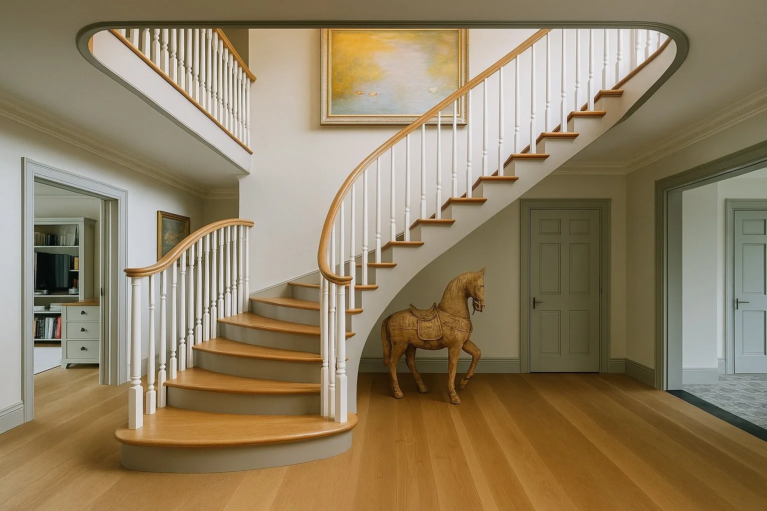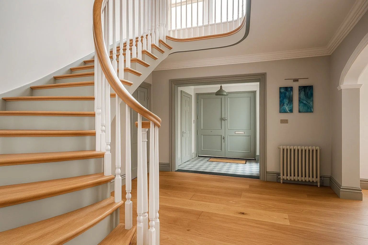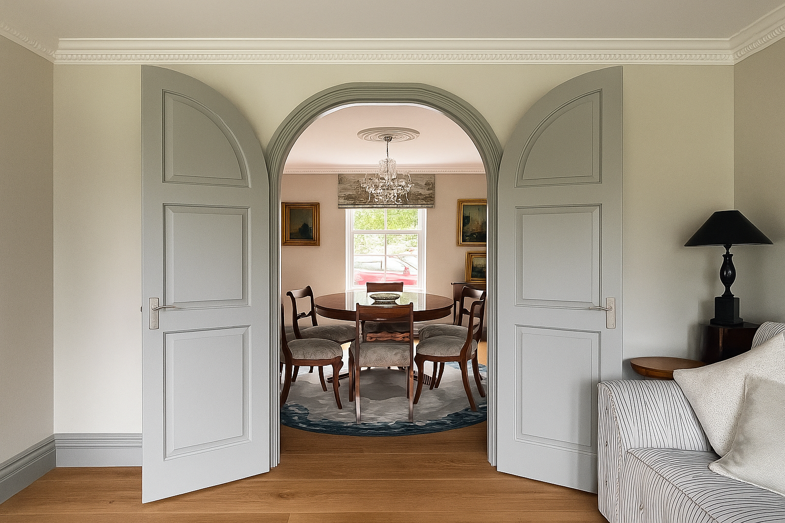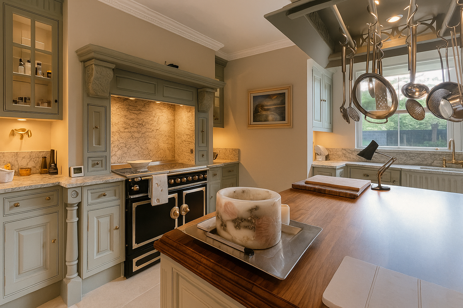 The Moat House is a comprehensively redeveloped country residence set within a tranquil, moated site, designed to accommodate both family life and leisure. The main house has been extensively remodelled, introducing a dramatic double-height entrance, an open-plan kitchen and dining space, and reconfigured private areas finished to a high specification. Outbuildings, once housing stables and staff facilities, have been transformed into a leisure complex featuring a music studio, wine cellar, cycle garage, virtual golf range, yoga space, and a covered pool with an outdoor kitchen.