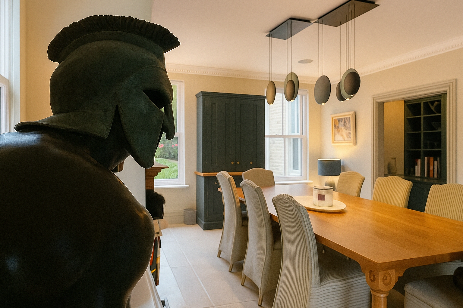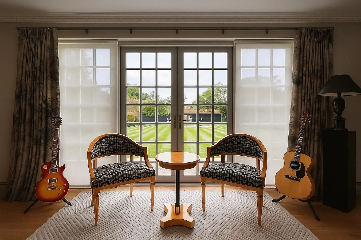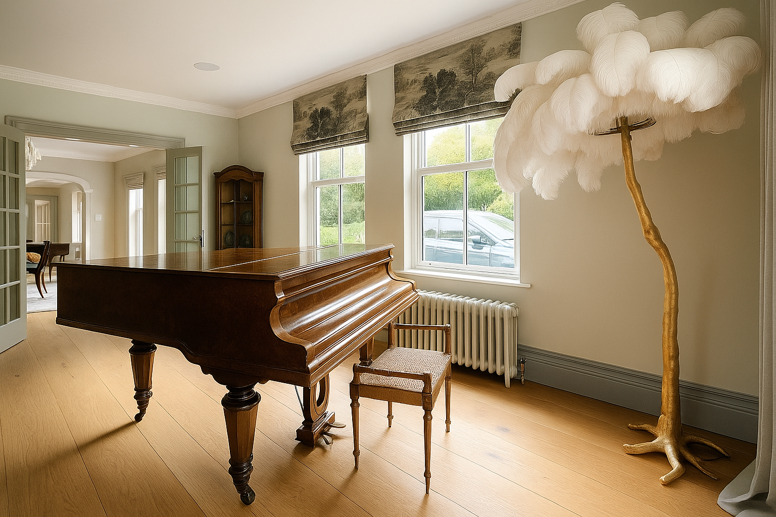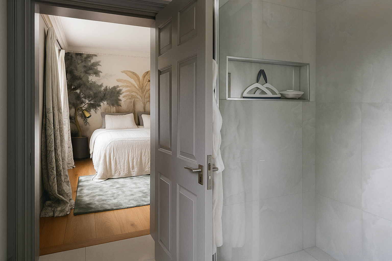 The Moat House is a comprehensively redeveloped country residence set within a tranquil, moated site, designed to accommodate both family life and leisure. The main house has been extensively remodelled, introducing a dramatic double-height entrance, an open-plan kitchen and dining space, and reconfigured private areas finished to a high specification. Outbuildings, once housing stables and staff facilities, have been transformed into a leisure complex featuring a music studio, wine cellar, cycle garage, virtual golf range, yoga space, and a covered pool with an outdoor kitchen.